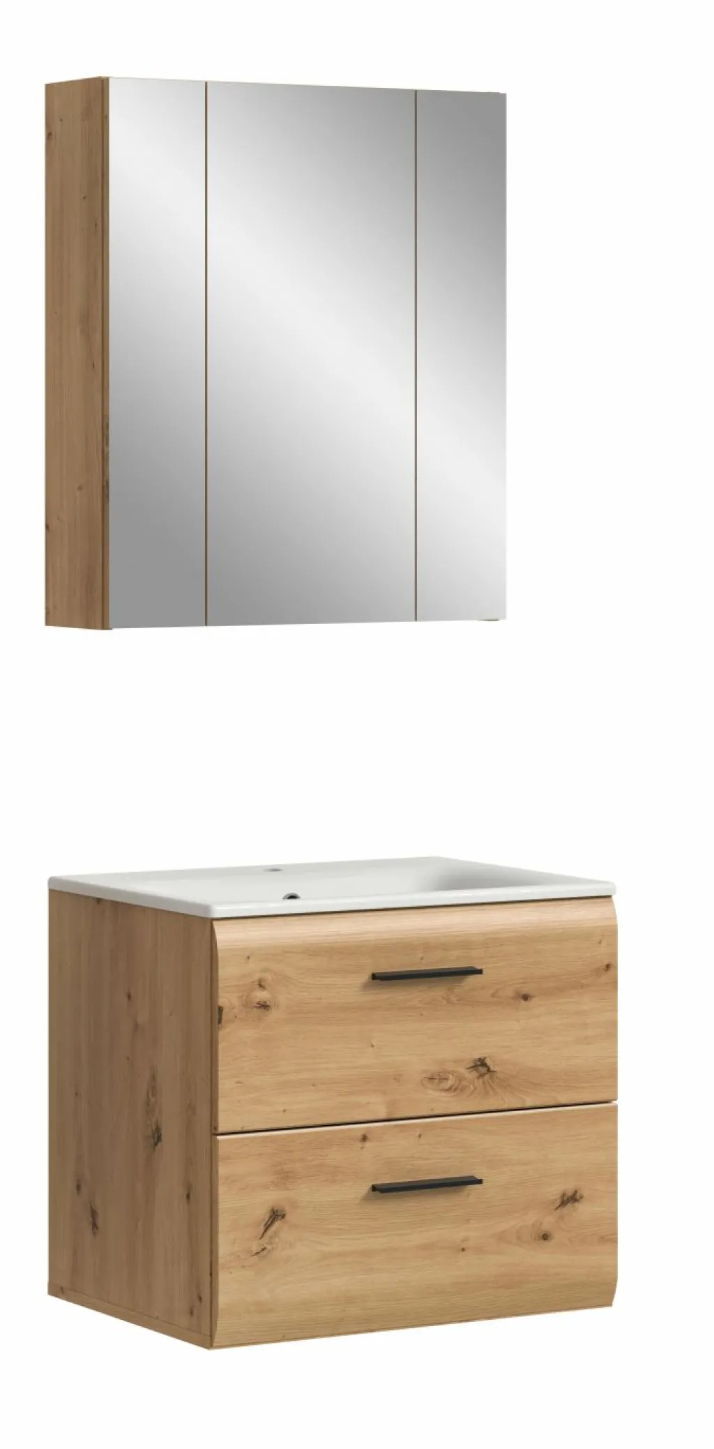 Façade : MDF (panneaux de fibres de bois de densité moyenne) thermoformé décor chêne Artisan / miroir