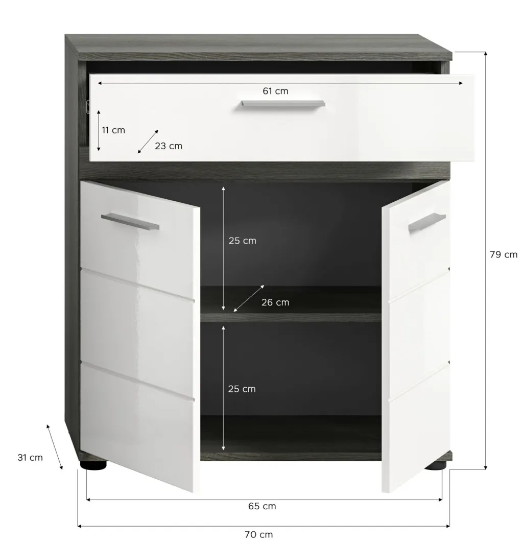 1 meuble de salle de bains avec 1 tiroir, 2 portes et 1 tablette amovible