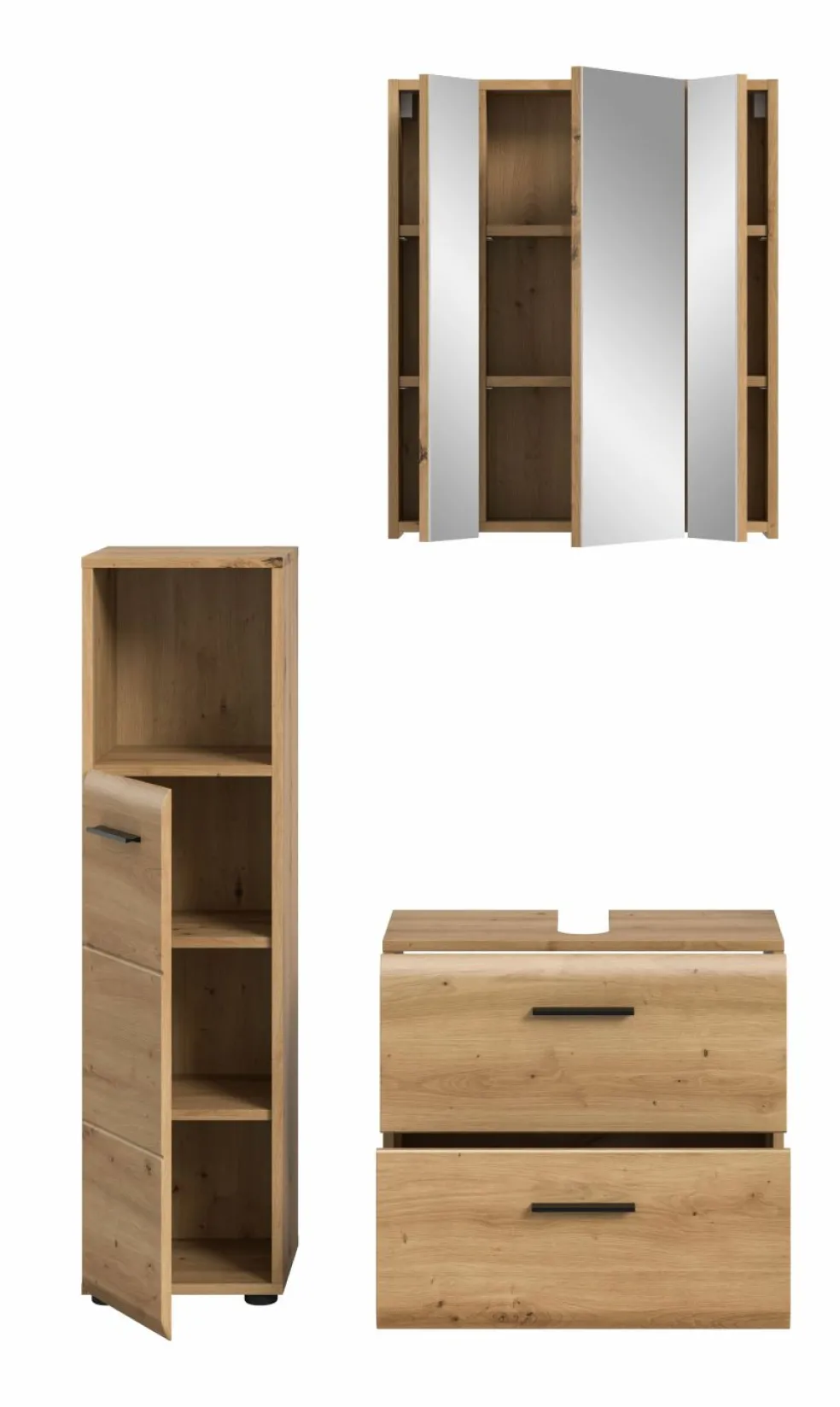 Façade : MDF (panneaux de fibres de bois de densité moyenne) décor chêne Artisan thermoformé / miroir