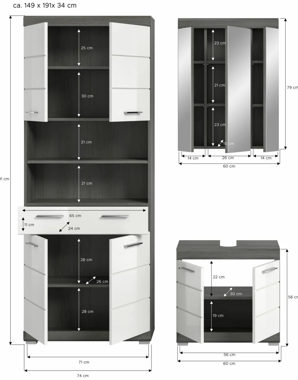 | Armoire de salle de bains | 74 | 191 | 31 |