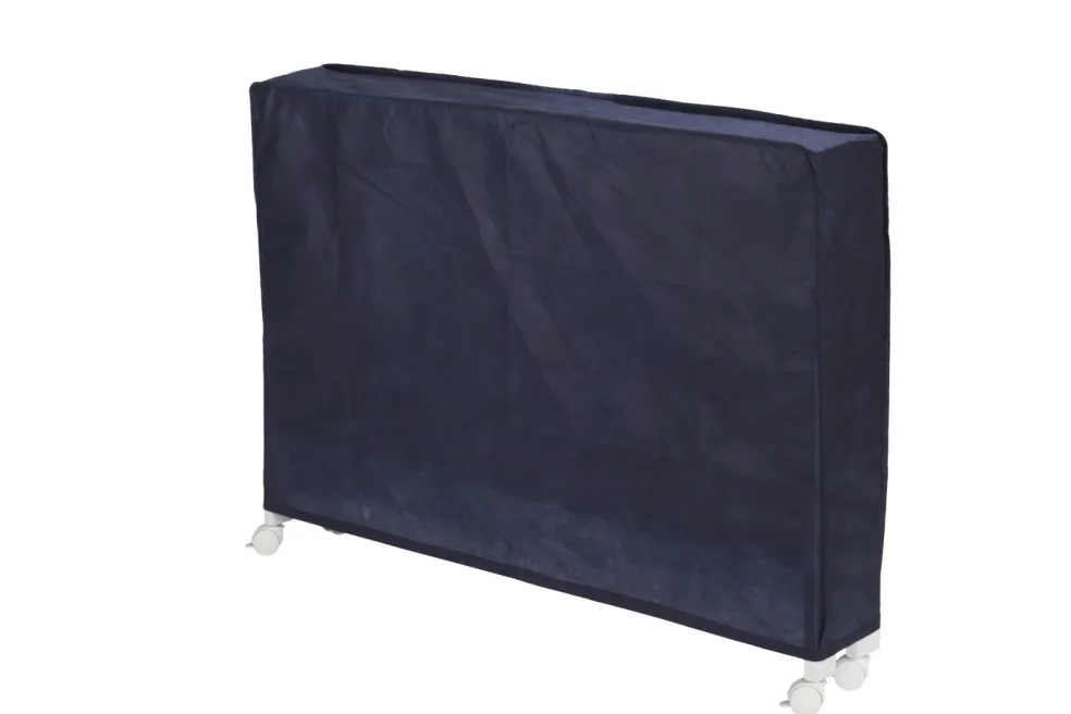 La housse de protection bleu foncé permet de protéger le lit pliant JORI de la poussière et de la saleté.