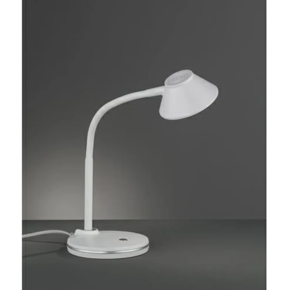 La lampe de table BERRY se caractérise par un design tendance et intemporel. Grâce à ses formes sobres et à son bras flexible pour l’orientation précise du flux lumineux, la lampe de table peut être réglée individuellement. Ainsi, le modèle BERRY est idéal pour un éclairage moderne et fonctionnel du bureau. La lampe à poser a une hauteur maximale de 36 cm et un diamètre maximal de 25 cm. Le design ton blanc très sobre autorise une combinaison avec différents styles d’ameublement et mélange de couleurs. La lampe dispose, en outre, de la technologie LED qui se caractérise par une luminosité de qualité et une excellente efficacité énergétique. Ceci permet d’économiser 80 % des coûts énergétiques par rapport aux ampoules halogènes habituelles. De plus, les sources lumineuses LED ont une durée de vie accrue, produisent moins de chaleur et participent à la protection de l’environnement.