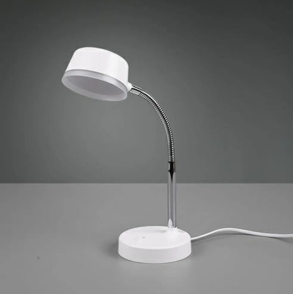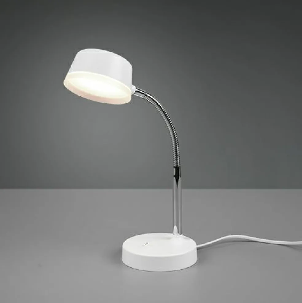 La lampe de table KIKO est la source lumineuse idéale. La lampe à poser trouvera sa place sur un bureau ou une table, mais aussi sur un chevet à côté du lit, sur une commode ou un buffet à fin de créer la lumière d’ambiance parfaite. Le brave flexible permet d’orienter la lampe de façon idéale. L’interrupteur au niveau du pied permet d’allumer et d’éteindre la lampe facilement. Le design minimaliste et le coloris blanc garantissent une intégration parfaite dans les intérieurs existants. La lampe dispose, en outre, de la technologie LED qui se caractérise par une luminosité de qualité et une excellente efficacité énergétique. Ceci permet d’économiser 80 % des coûts énergétiques par rapport aux ampoules halogènes habituelles. De plus, les sources lumineuses LED ont une durée de vie accrue, produisent moins de chaleur et participent à la protection de l’environnement.