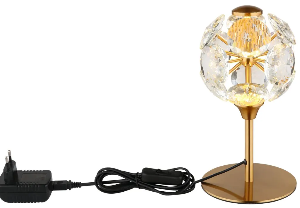 La lampe de table ronde en métal doré et cristaux transparents K9 avec abat-jour en forme de boule est un accessoire élégant pour tout type de pièce. L’abat-jour équipé de cristaux scintillants confère à la lampe une note glamour et garantit une luminosité agréable dans la pièce.