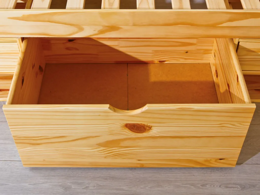 | Equipement lits: | Tiroirs, incl. chevet(s), incl. sommier à lattes , sans tête de lit | ||