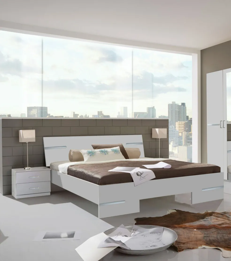 Caisson et façade : ton blanc avec lattes ton chrome brillant