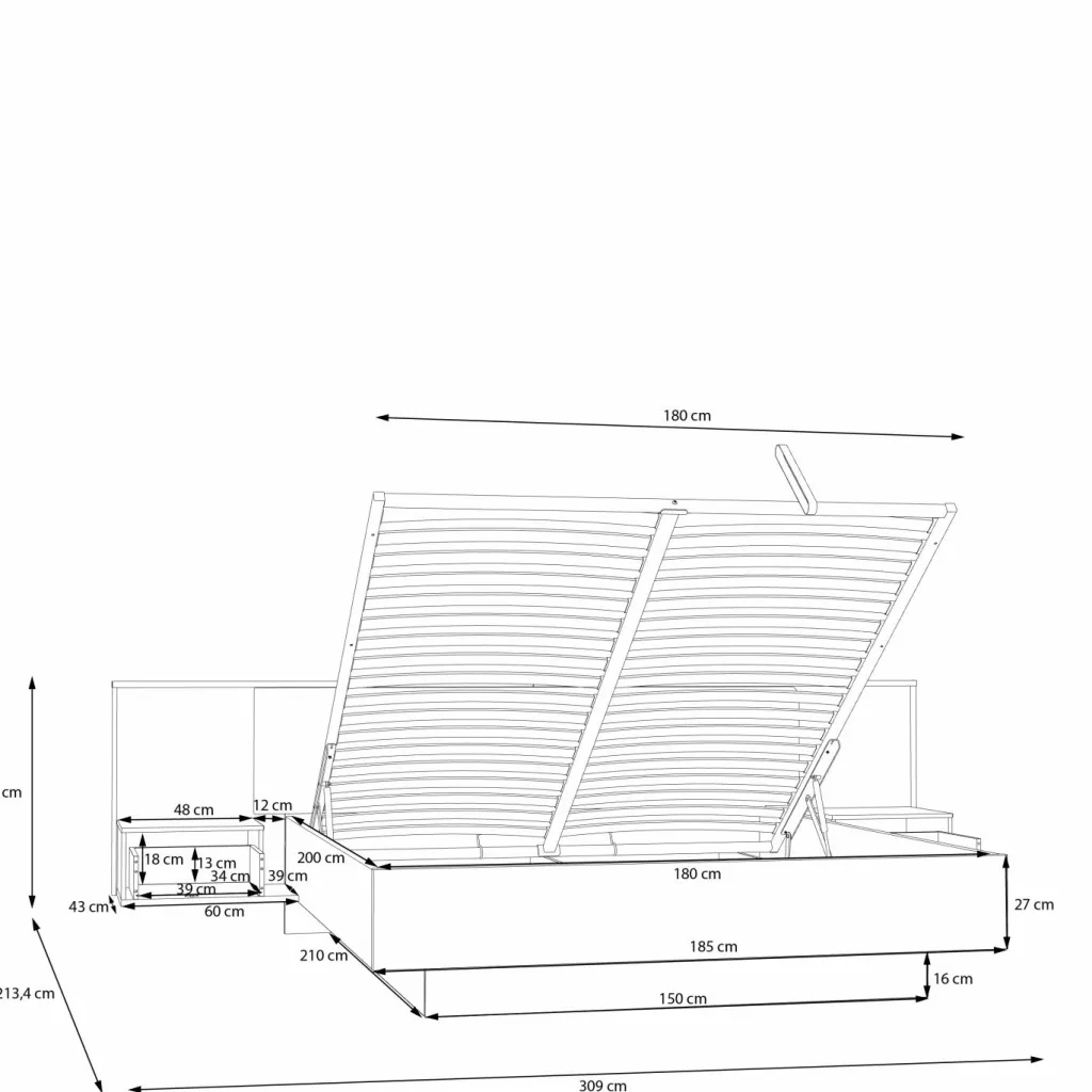 | Equipement lits: | Tiroirs, incl. coffre de lit | ||