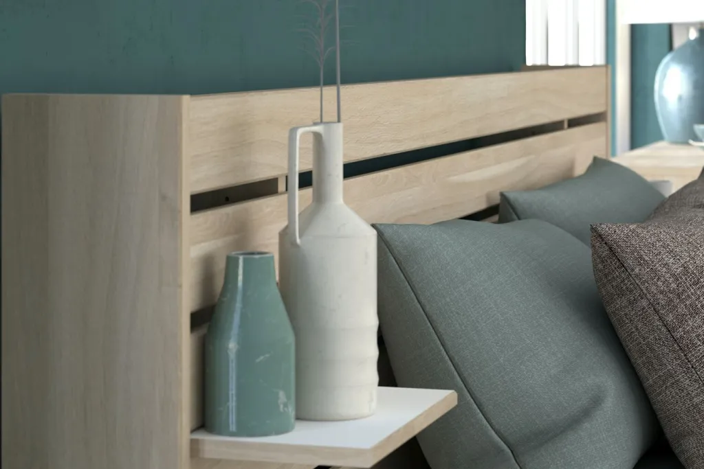 2 tablettes fixes au niveau de la surface de couchage (en guise de chevets)