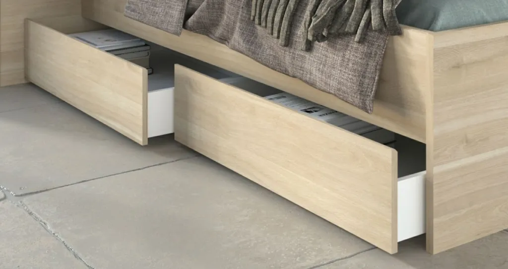 2 tiroirs de lit à roulettes, pouvant être positionnés des deux côtés