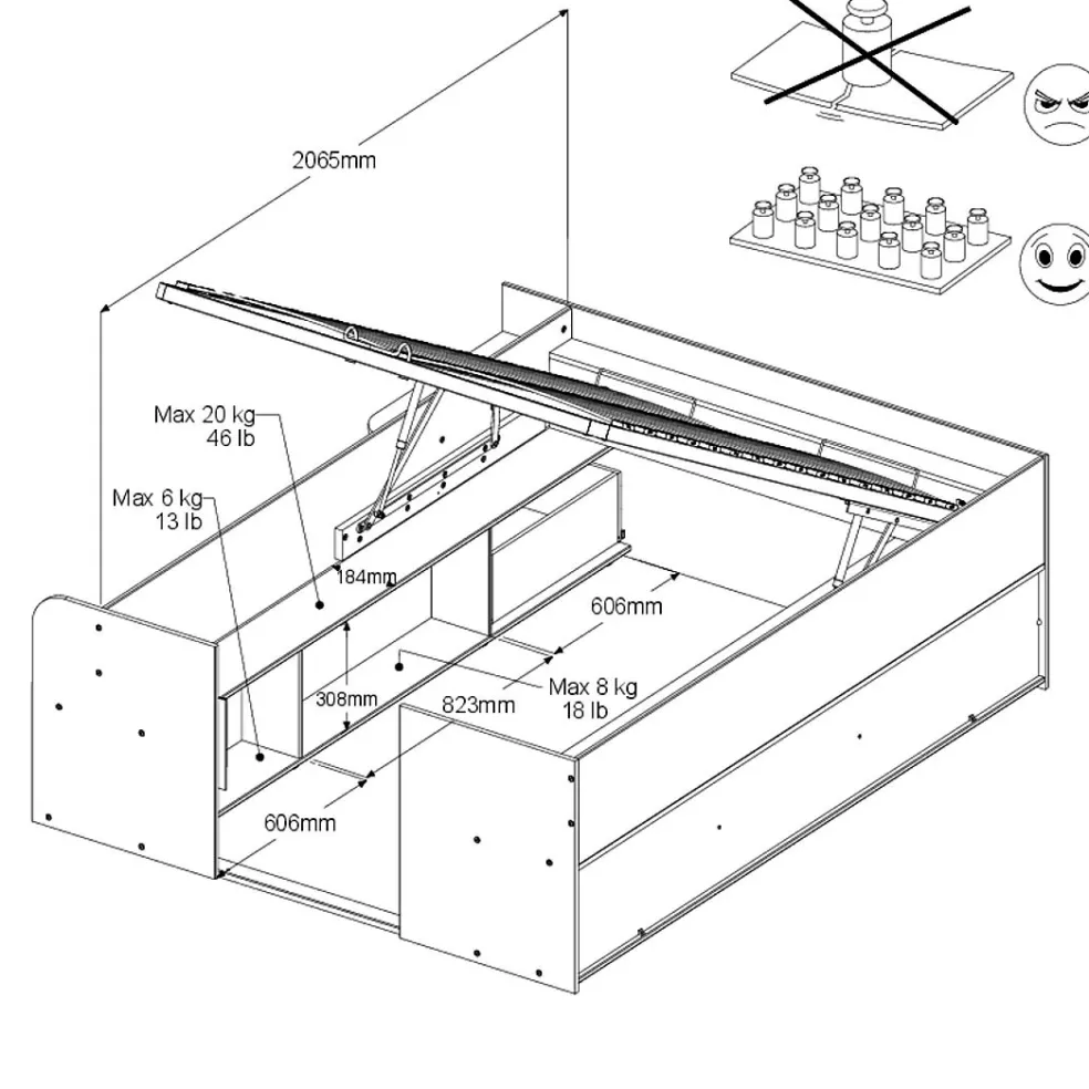 | Type de lit: | Lit avec rangements, Lit double | ||