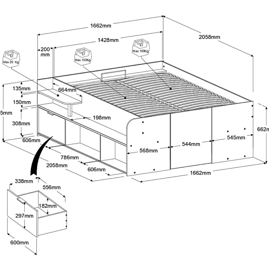 | Type de lit: | Lit avec rangements | ||