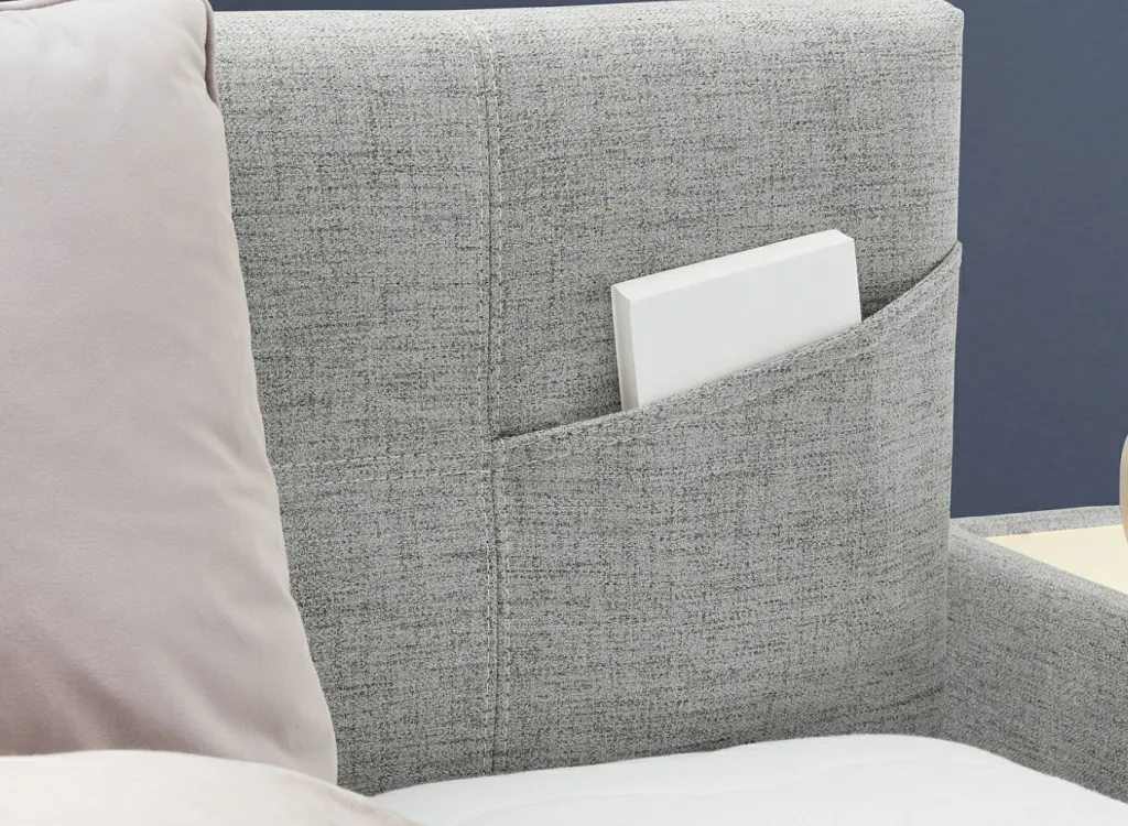 un espace de rangement supplémentaire est offert par les 2 poches dans la tête de lit