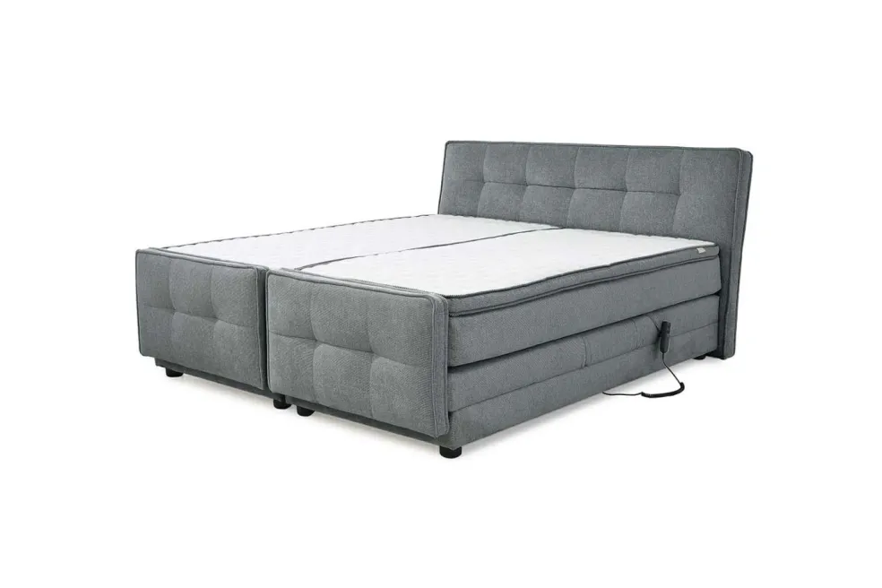 Le point fort de ce lit boxspring est indéniablement le réglage électrique. La télécommande ultra pratique permet de régler facilement la position de couchage favorite grâce à une multitude de réglages de la tête et du pied de lit. Outre son joli design, le pied de lit décoratif offre l’avantage d’empêcher le matelas et le surmatelas de glisser lors du réglage (électrique) du lit.