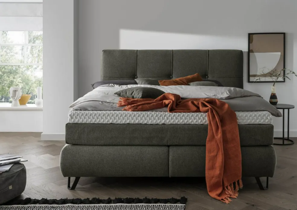 2 caissons avec cadre en épicéa et garnissage intégré en ressorts ensachés, avec couche de mousse arrondie, revêtement en tissu d’ameublement et coutil double