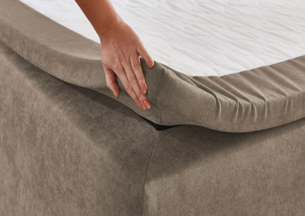 Ayant l’aspect d’un surmatelas séparé sans que celui-ci ne puisse glisser (housse fermement cousue). Un renfoncement permet également de fixer un drap-housse sans que les faces du matelas ne soient recouvertes.
