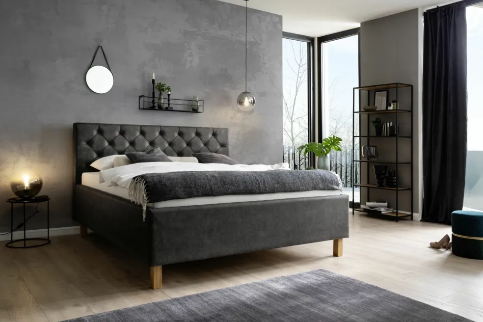 Tête de lit avec matelassage en forme de losanges