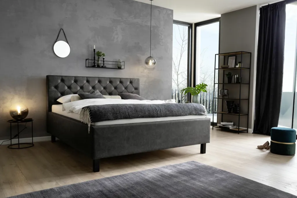 Tête de lit avec matelassage en forme de losanges