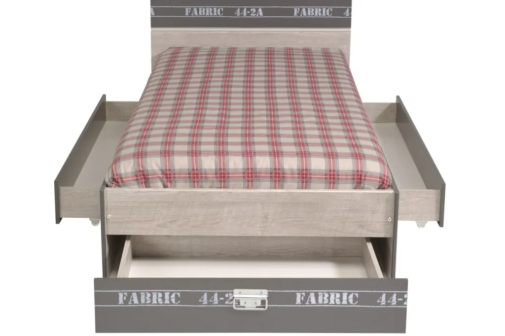 Le lit d’ado FABRIC 10 marque des points par son design ultra cool, sa finition d’excellente qualité et sa capacité à créer une atmosphère tendance et agréable. Trois tiroirs de lit offrent un vaste espace de rangement.