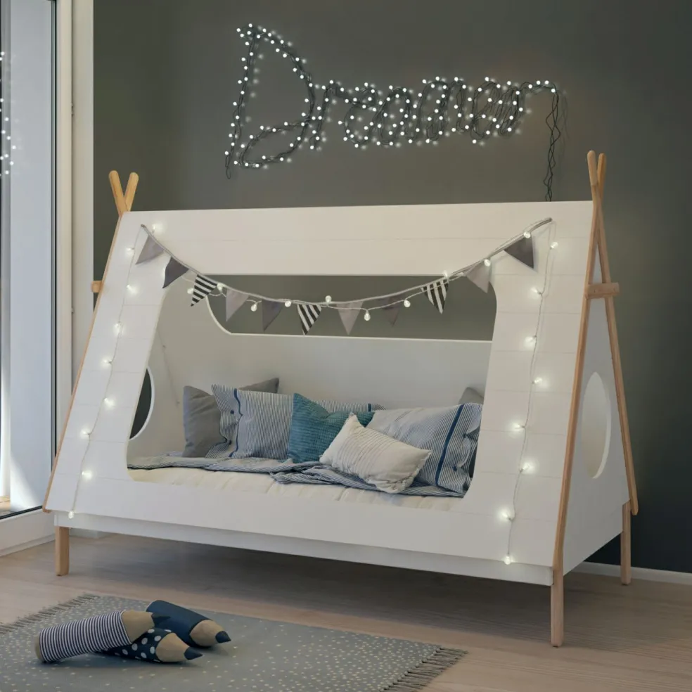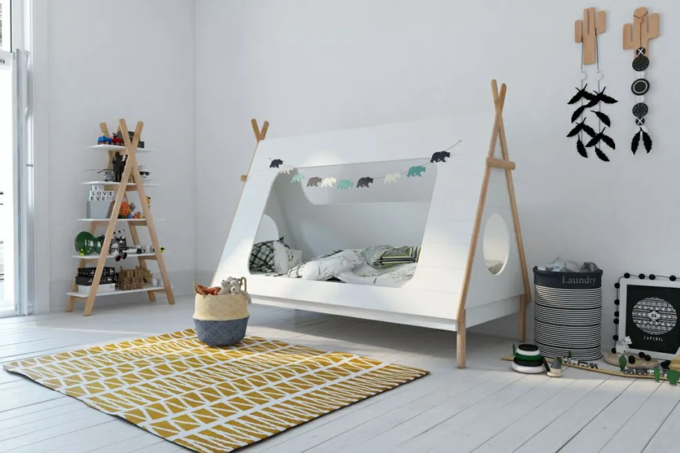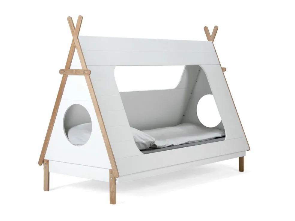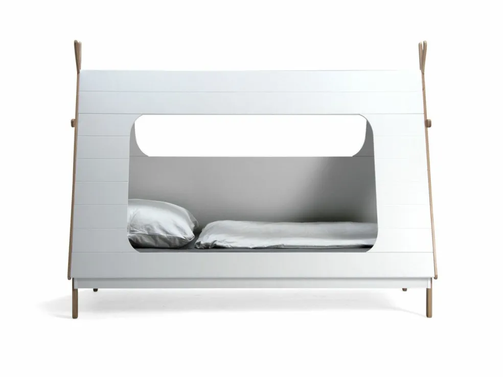 Lit enfant : MDF (panneau de fibres de bois de densité moyenne) ton blanc laqué en vernis acrylique