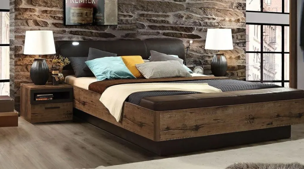 Revêtement tête de lit et banc au pied : cuir synthétique coloris marron 100% polyuréthane