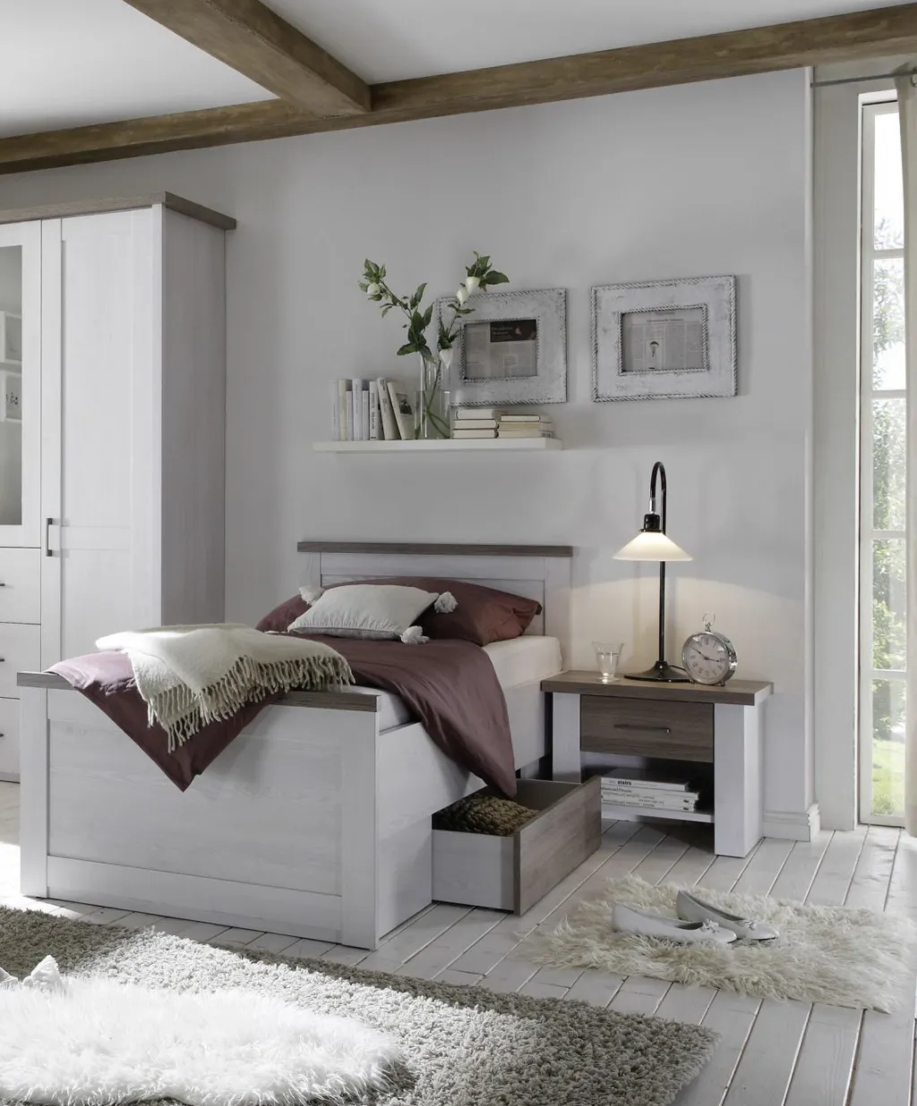 décor pin blanc avec contrastes décor chêne truffier