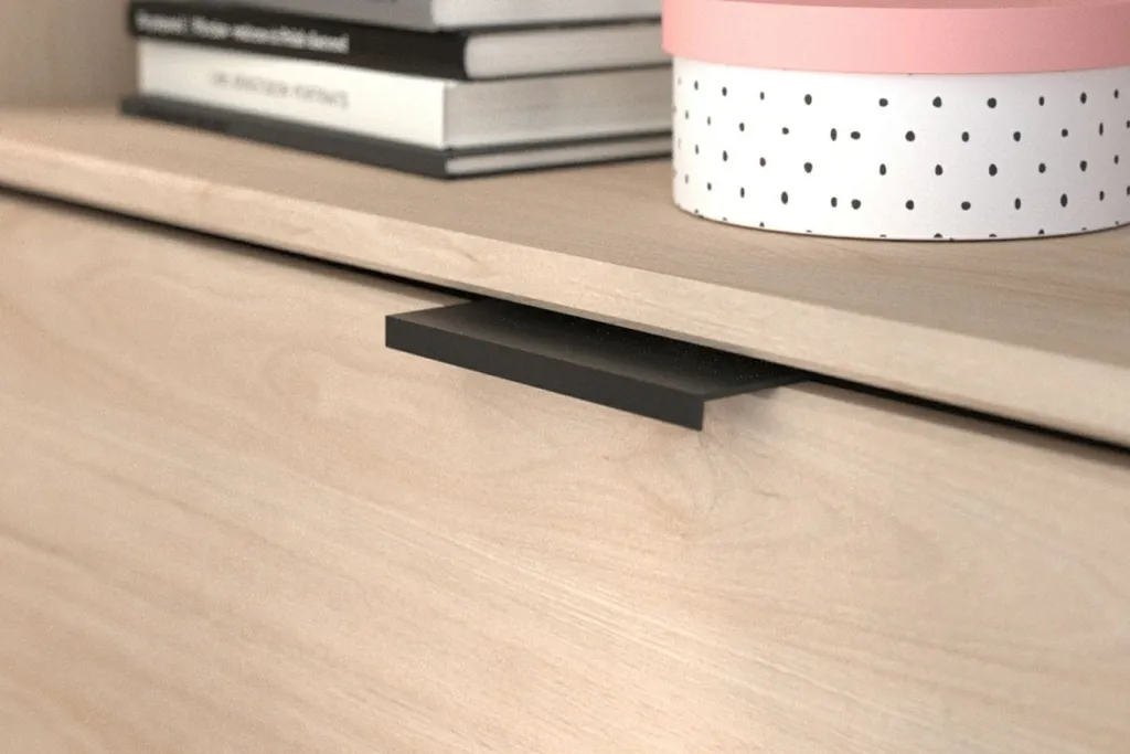 Caisson et façade : 32 ton noir / 153 décor chêne Jackson