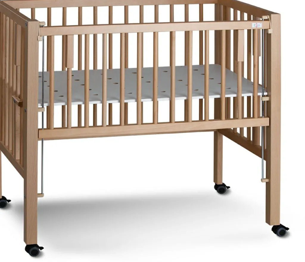 Grâce au lit parc, vous pouvez gardez votre nourrisson près de vous la nuit. Avec le côté coulissant verrouillable fourni vous pouvez transformer en un tour de main le lit de bébé en lit d’enfant de qualité.
