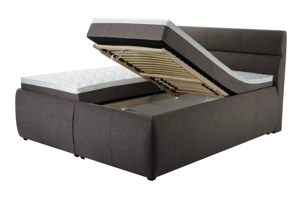 avec 2 sommiers à lattes réglables avec chacun 28 lattes et ouverture du coffre de rangement