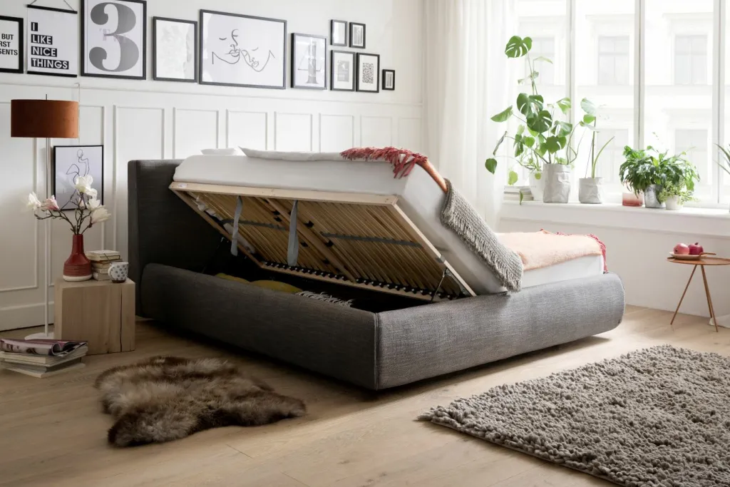 inclus : 2 coffres de lit avec multi-perforations et sommiers à lattes multiplis avec ouverture latérale