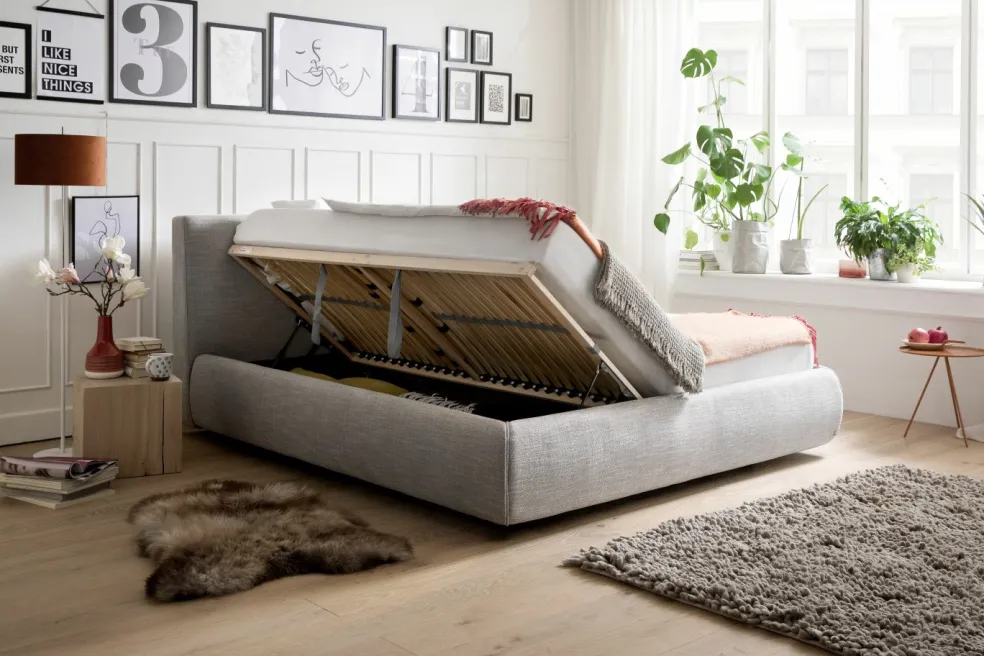 inclus : 2 coffres de lit avec multi-perforations et sommiers à lattes multiplis avec ouverture latérale