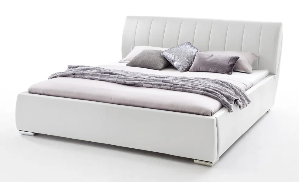 Lit rembourré ton blanc avec revêtement en cuir synthétique : face avant 100% polyuréthane, dos : 50% coton, 50% polyester