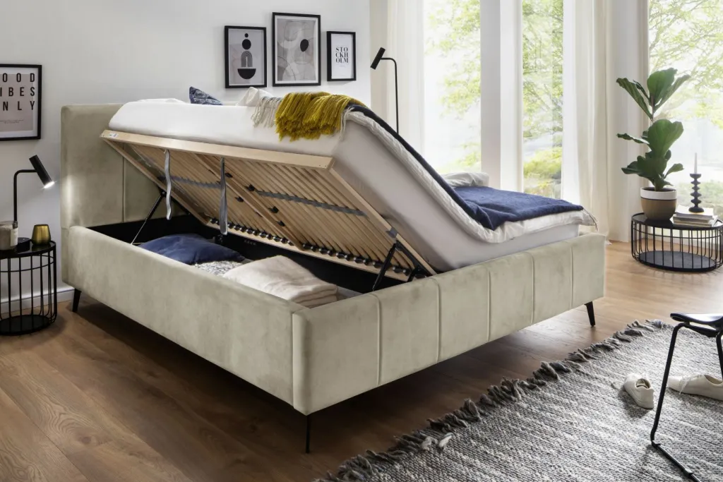 inclus : 2 coffres de lit avec aération et sommiers à lattes en bois multiplis avec ouverture latérale