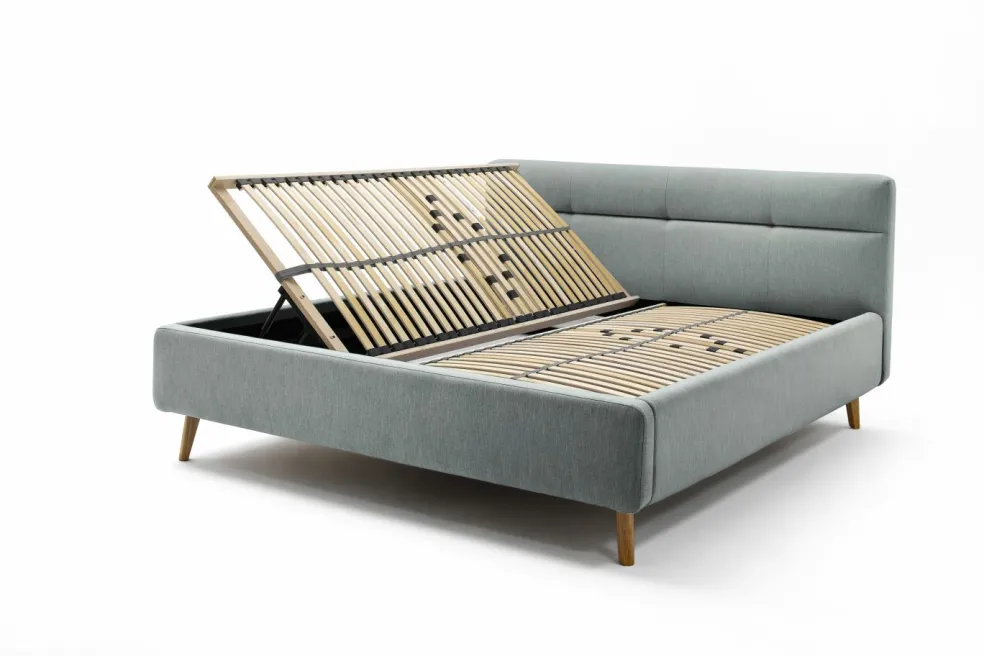 inclus : 2 coffres de lit avec aération et sommiers à lattes multiplis avec ouverture latérale