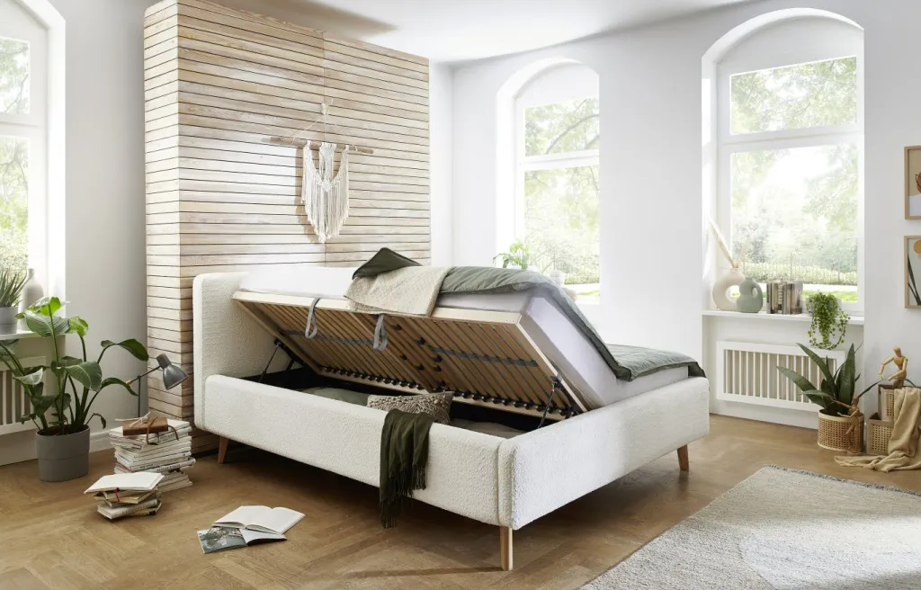 inclus : 2 coffres de lit avec aération et sommiers à lattes en bois multiplis avec ouverture latérale