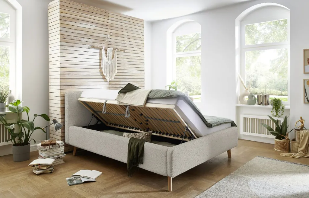 inclus : 2 coffres de lit avec aération et sommiers à lattes en bois multiplis avec ouverture latérale