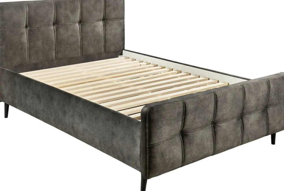 1 cadre de lit avec tête de lit et pied de lit capitonnés