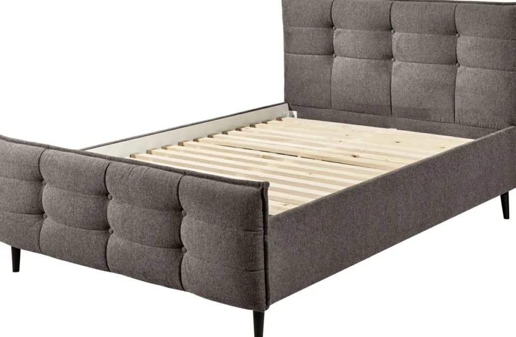 1 cadre de lit avec tête de lit et pied de lit capitonnés