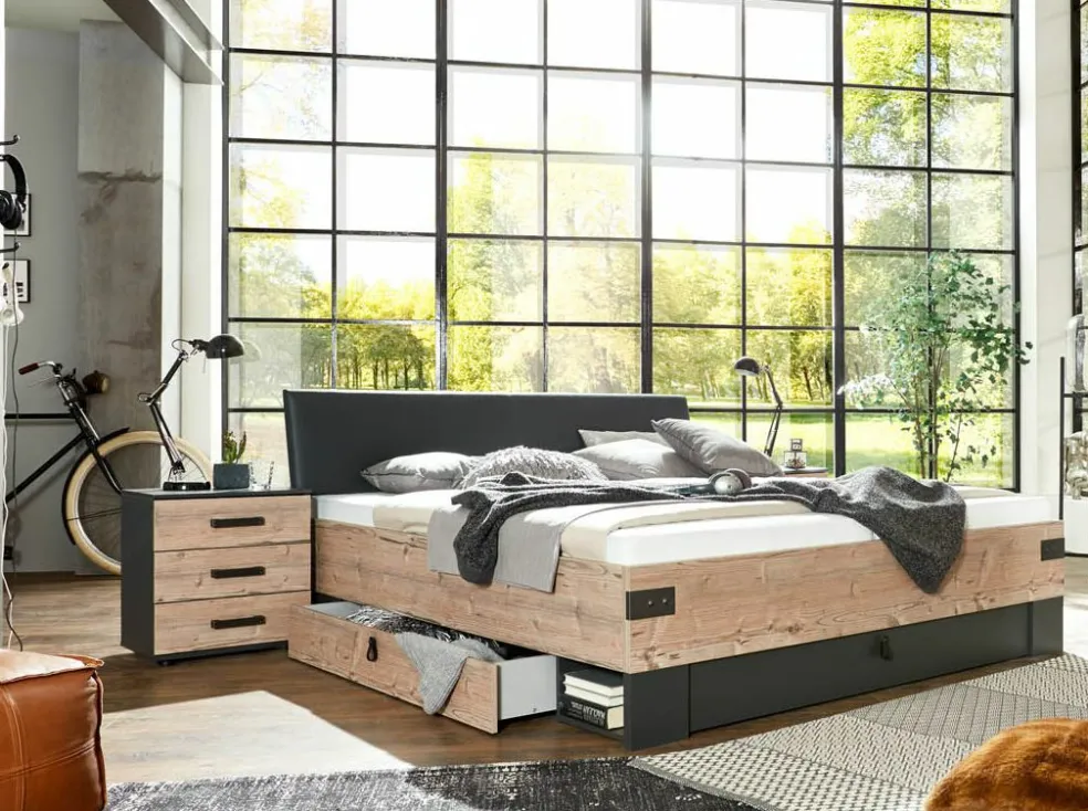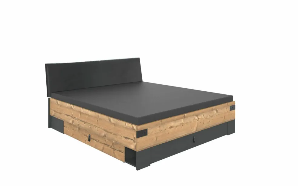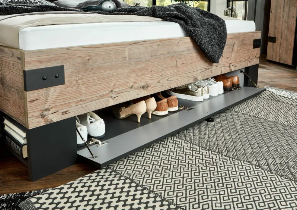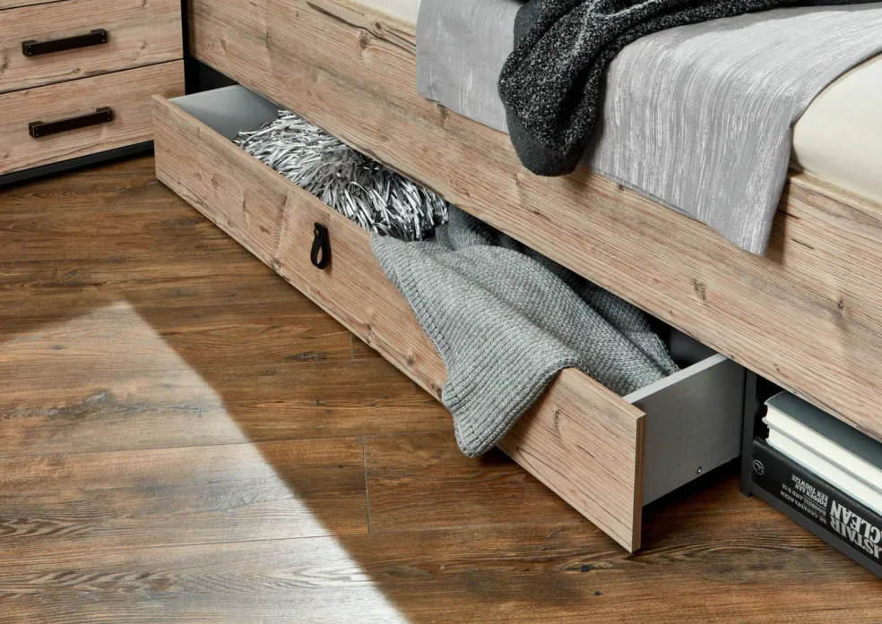 1 cadre de lit avec 2 tiroirs de lit et 1 casier avec abattant au pied du lit