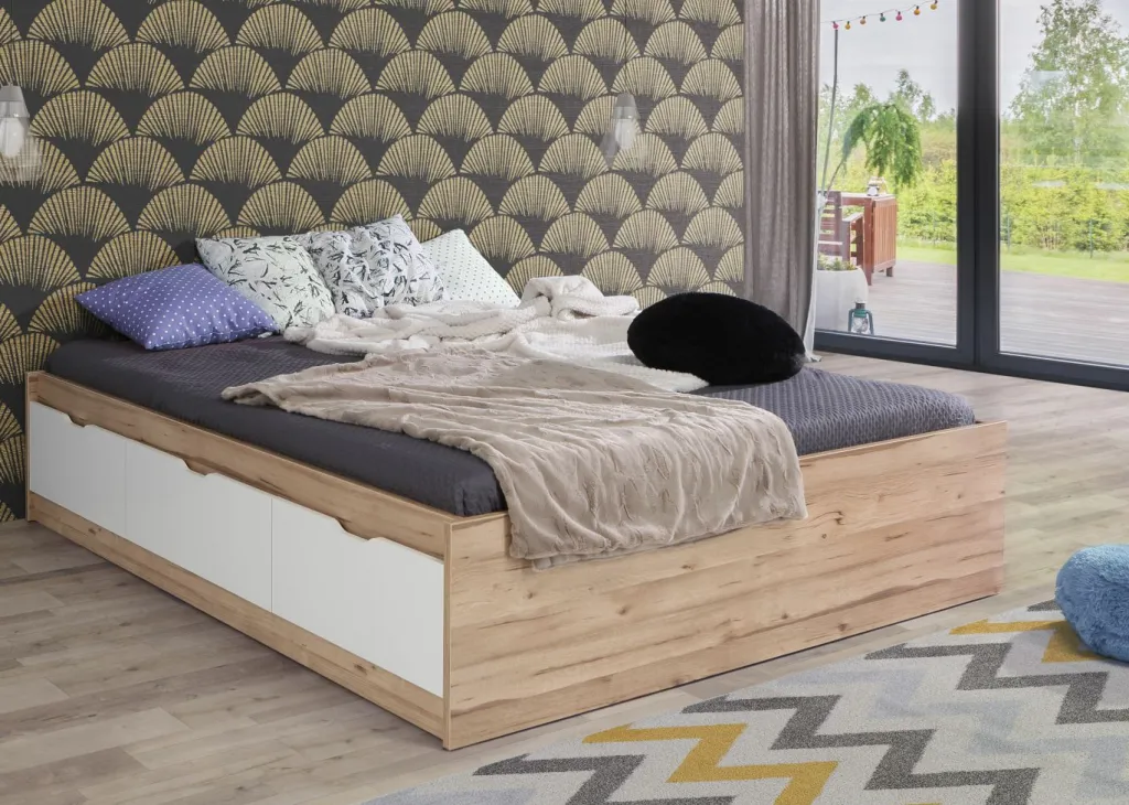 décor chêne planches de chêne et façades tiroirs ton blanc