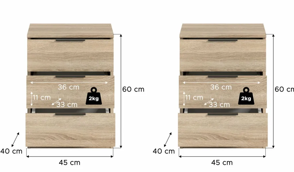 2 chevets avec 3 tiroirs chacun