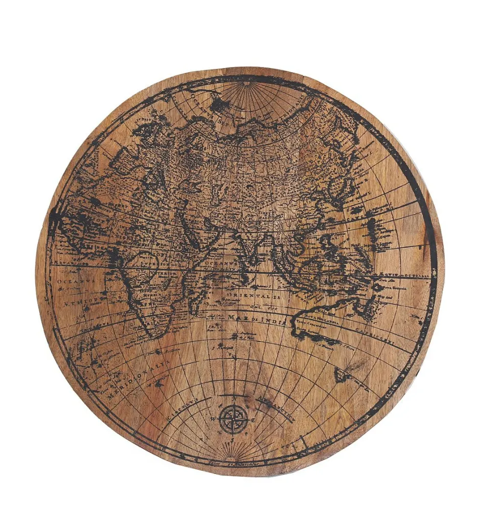 Plateau de table : bois de manguier massif (Inde) ton naturel, teinté, laqué et imprimé