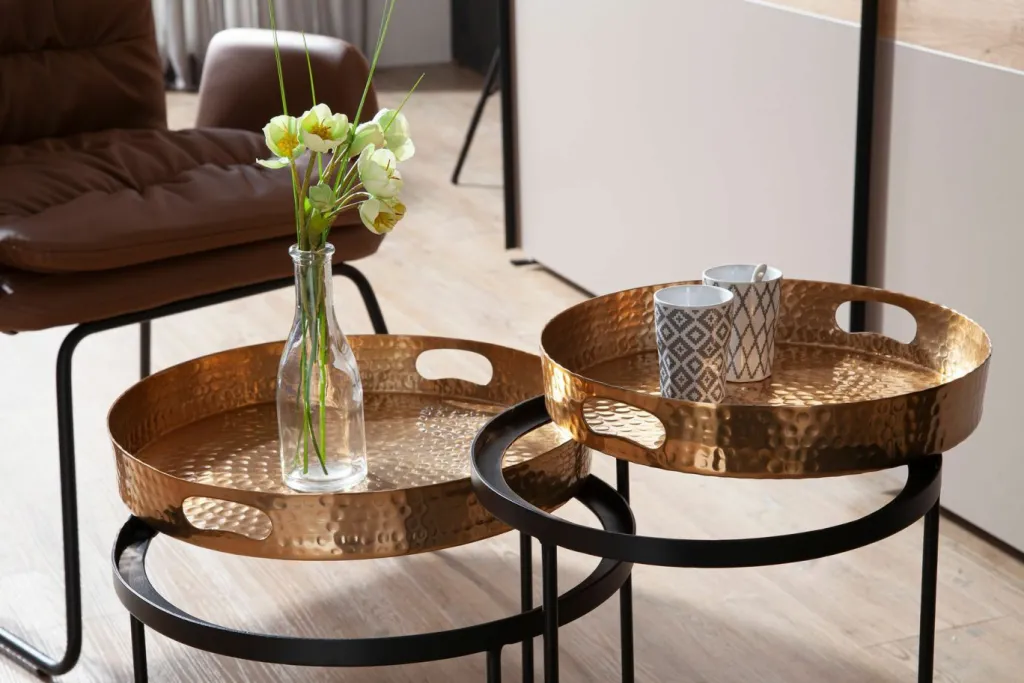 Plateaux : aluminium laqué ton doré