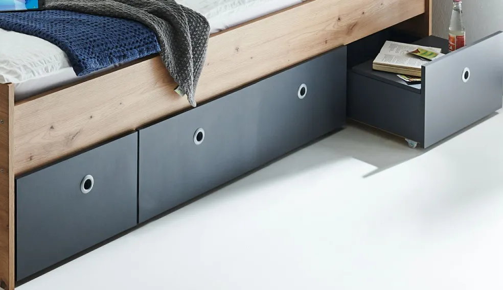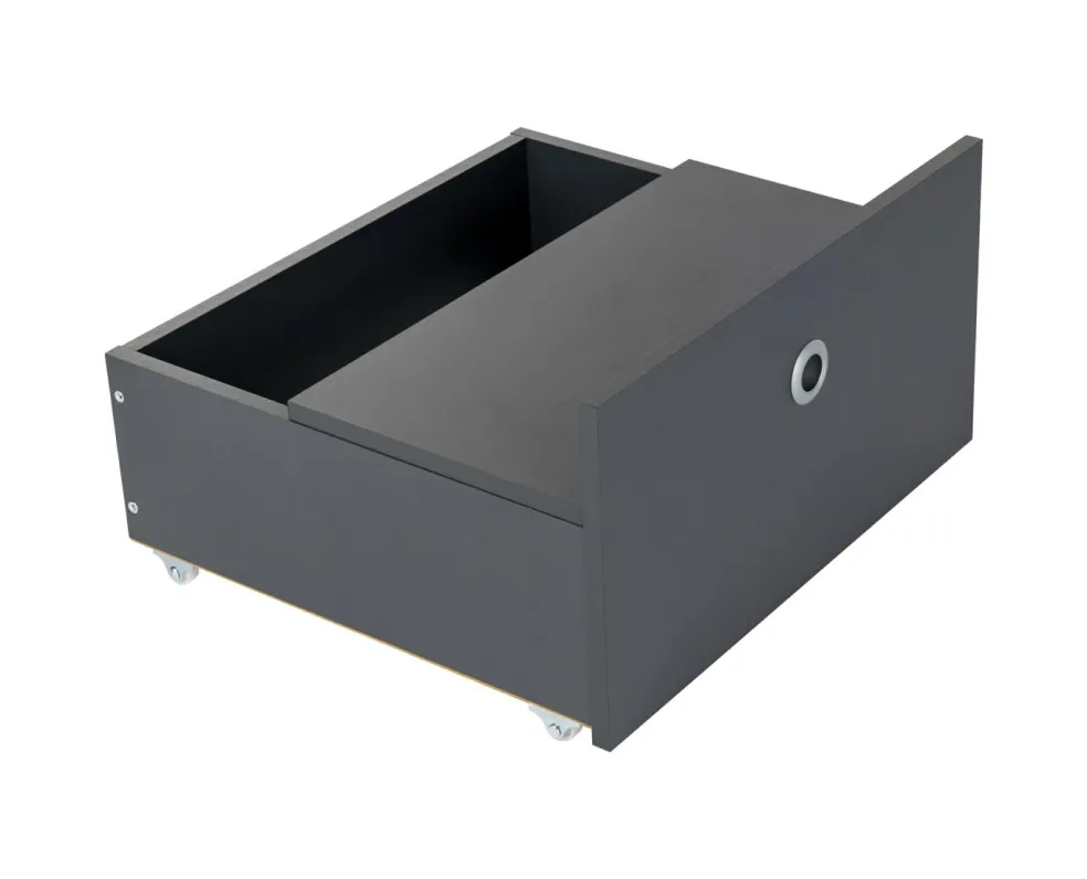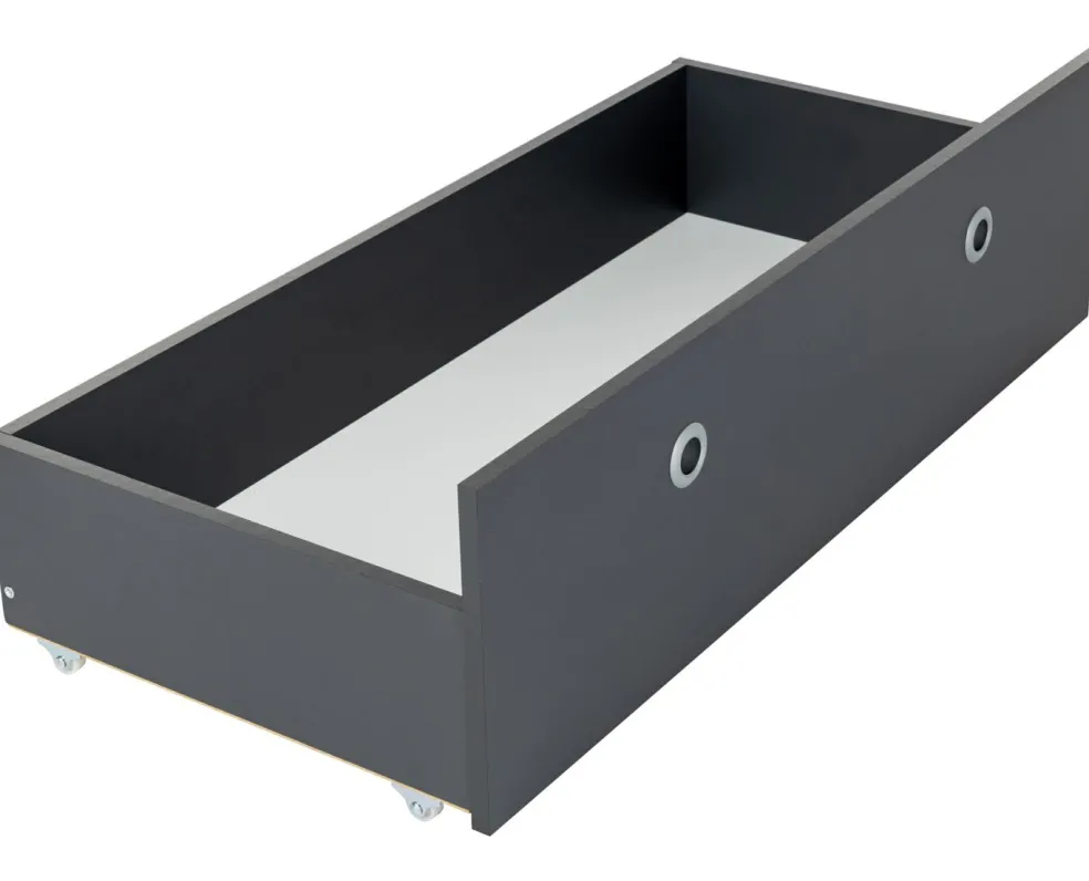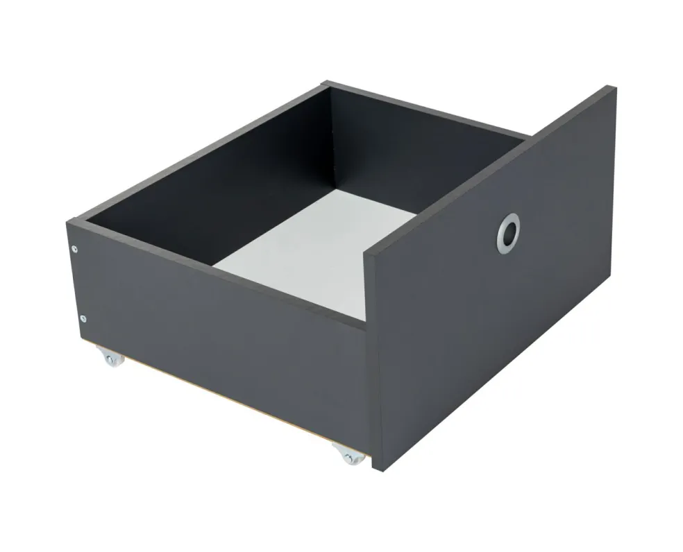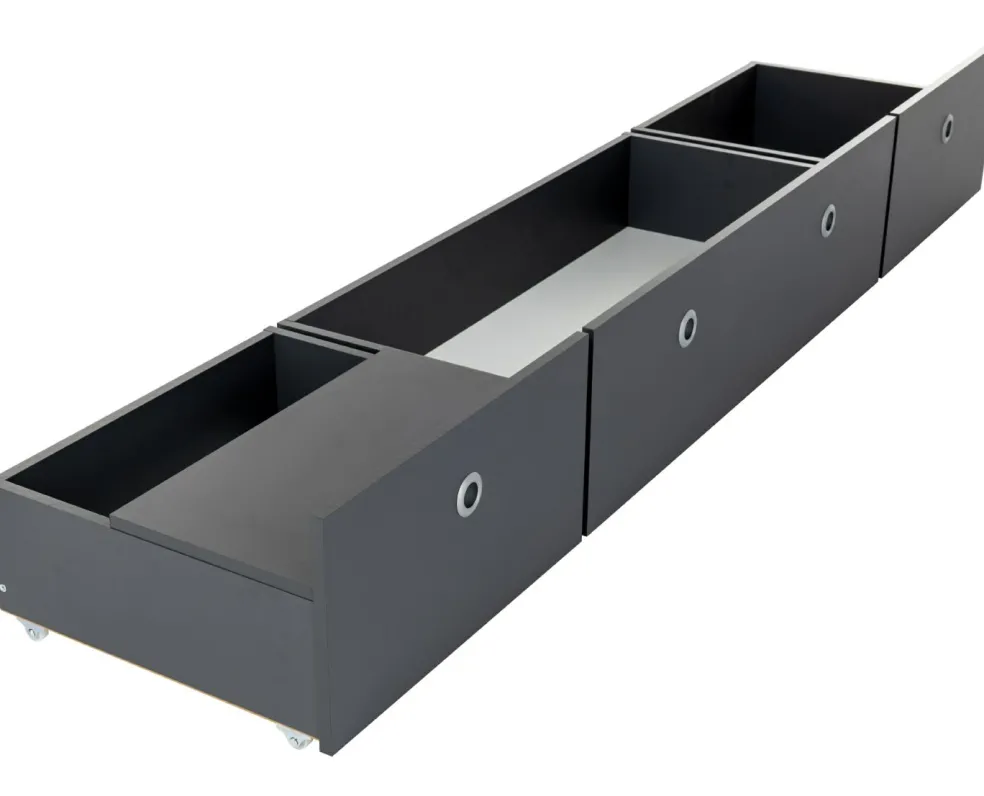 3 tiroirs à roulettes – dont un pourvu d’un couvercle souple pour être utilisé comme chevet