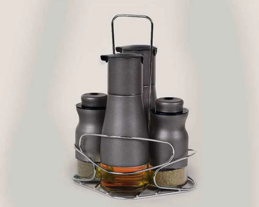 1 ménagère 4 pièces (huile, vinaigre, sel et poivre) avec support