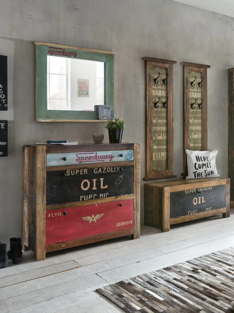 Vieux bois recyclé massif (Inde) laqué ton multicolore