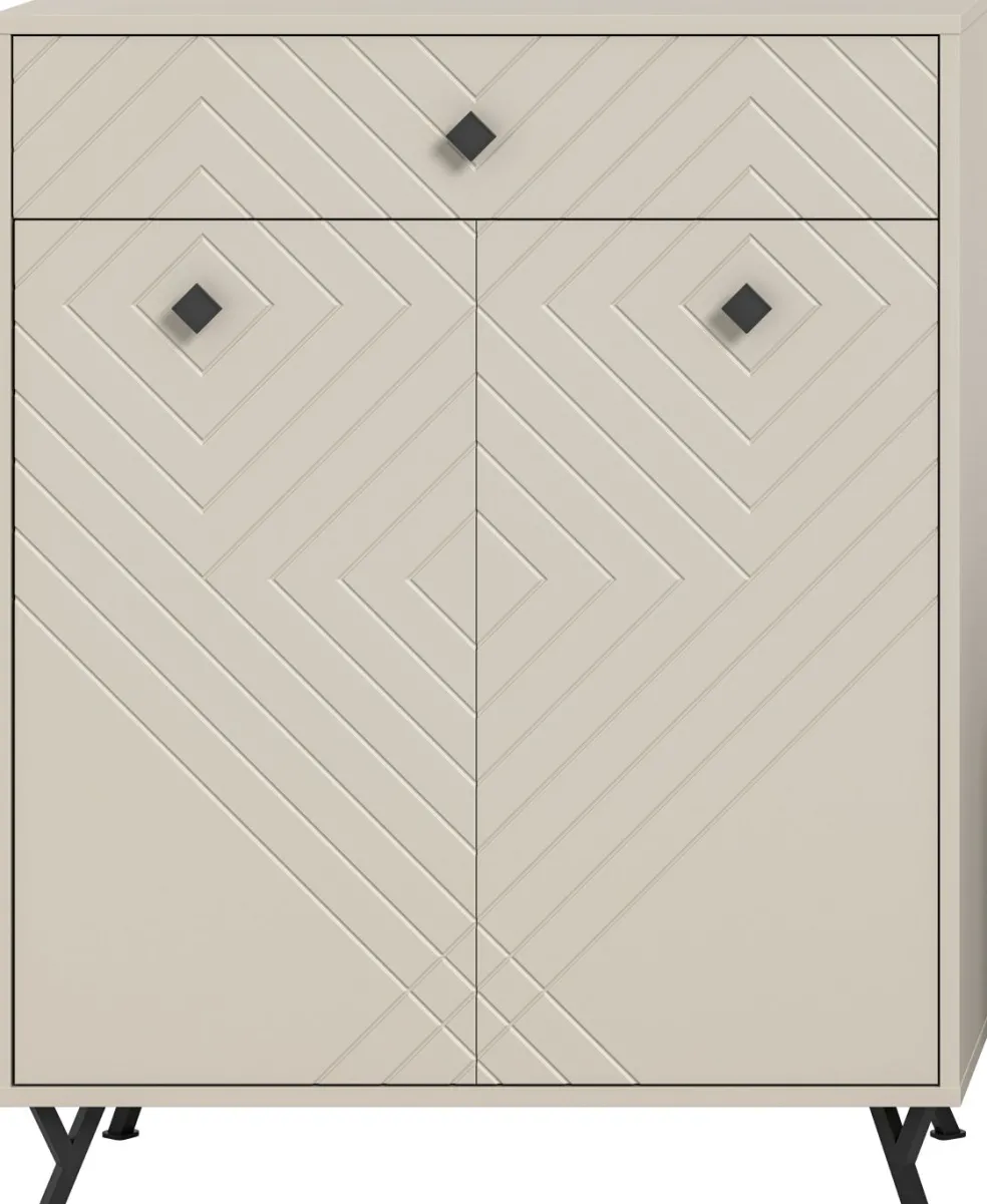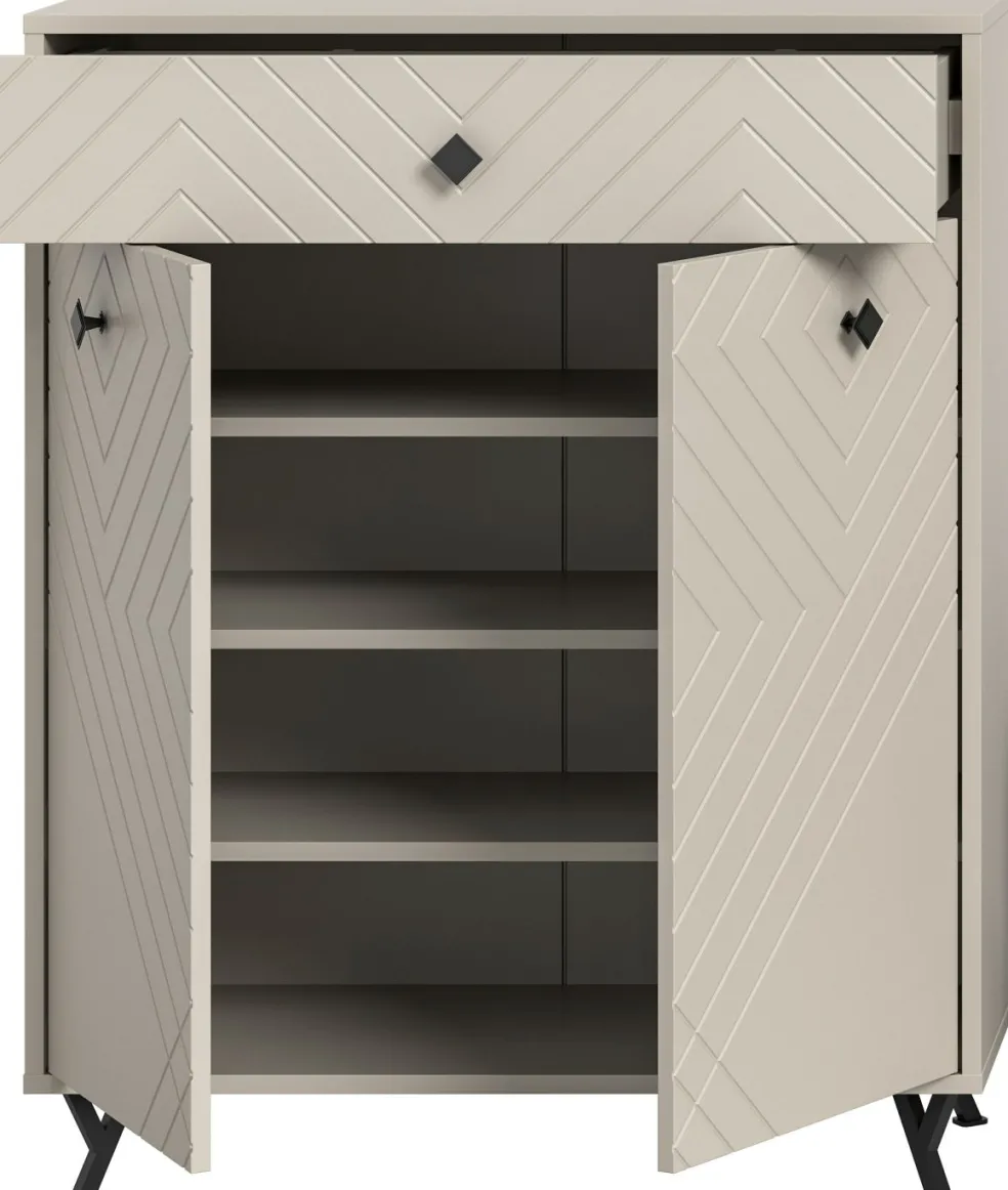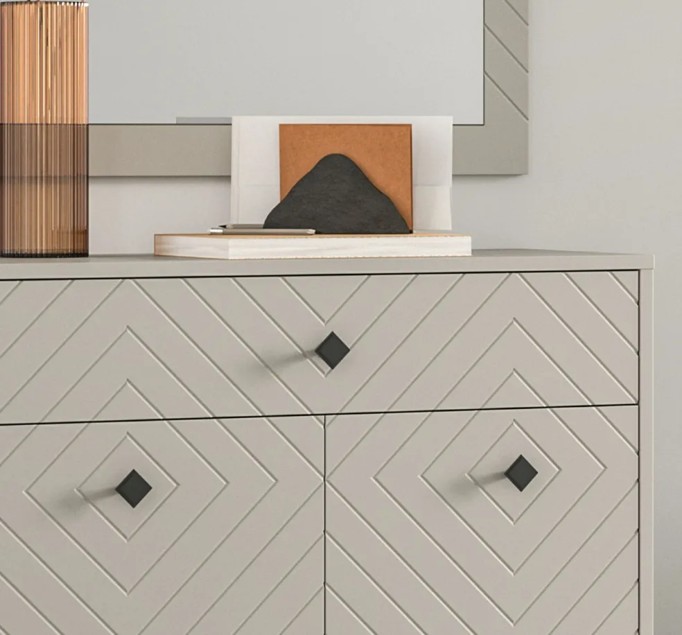 Façade : MDF (panneaux de fibres de bois de densité moyenne) thermoformé ton beige sable mat