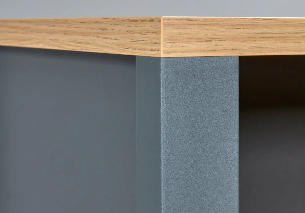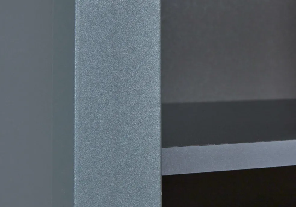 Façade et caisson : panneaux de particules MDF (panneau de fibres de bois de densité moyenne) ton anthracite