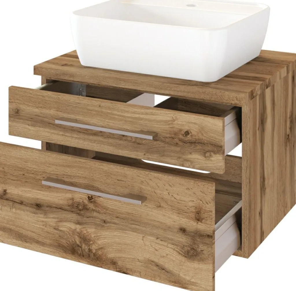 1 meuble sous vasque avec 1 tiroir bas et 1 tiroir haut avec fermeture amortie, incl. découpe siphon