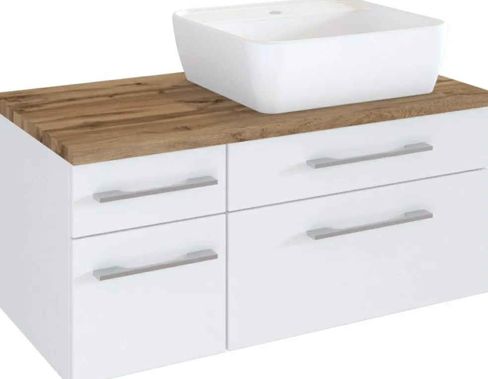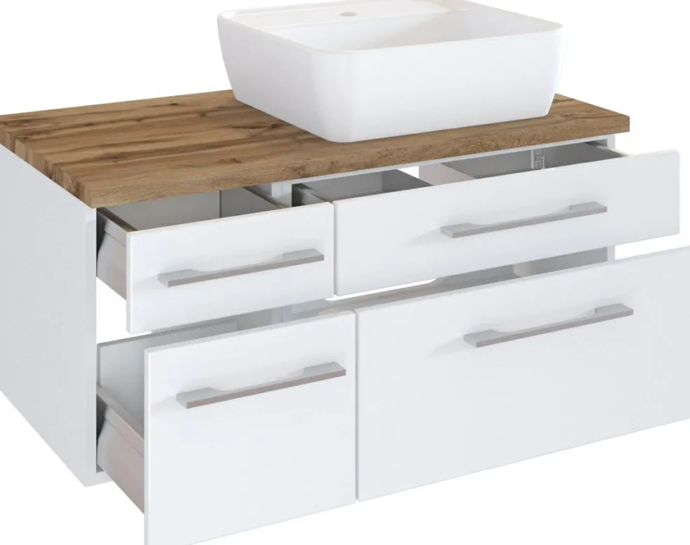 1 meuble sous vasque avec 2 tiroirs bas et 2 tiroirs hauts avec fermeture amortie, incl. découpe siphon