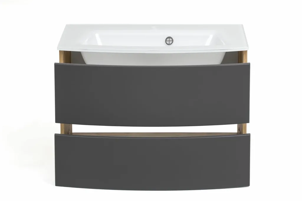 1 meuble sous vasque avec 2 tiroirs en métal à sortie totale avec fermeture amortie, façades arrondies
